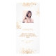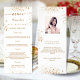 Carte menu fête d'anniversaire. Personnalisez et ajoutez un nom, un âge, une date et le menu. Un arrière - plan blanc chic, décoré avec de la poussière de parties scintillant en faux or. Lettres de couleur dorée. Retour : ajoutez une photo de la fille d'anniversaire, des faits amusants et des noms.