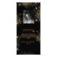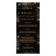 Carte menu fête d'anniversaire. Personnalisez et ajoutez un nom, un âge, une date et le menu. Un arrière - plan noir chic, décoré avec de la poussière de parties scintillant imitation. Lettres de couleur dorée. Retour : ajoutez une photo de la fille d'anniversaire, des faits amusants et des noms.