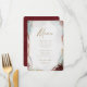Aquarelle Ethérée Abstraite moderne Menus Mariage Rouge & Or. Ce design moderne est magnifiquement peint à la main avec des couleurs riches qui sont parfaites pour l'hiver. Montré dans le Mariage de vin Couleur Palette couleur de : Rouge vin foncé, Gris de château, Rose perle, Or ancien et Cascade Aqua Turquoise. Avec des détails de feuille de parties scintillant métallique, et une police de script de signature magnifique avec des queues, la collection de mariage d'aquarelle éthéré est sûr de rendre votre mariage mémorable et belle! Pour en savoir plus, recherchez les collections mariages 2021 de Chic Paperie pour voir des designs plus tendance et des couleurs mariages pour cette année.