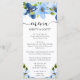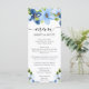 Menu Aquarelle bleu et Mariage de fleurs de marine