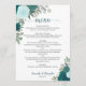 Menu Aquarelle turquoise Floral Elegant Boho Mariage