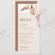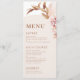 Carte de menu moderne Boho Floral Blush Arch Menu moderne mais romantique mariage avec une arche blush pâle au milieu et un arrangement floral sec avec feuilles de palmiers et fleurs de couleur rousse. Ce menu mariage bohème conviendra à un couple qui aime les motifs floraux audacieux avec une touche moderne.