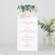Un design d'aquarelle élégant avec des roses orange turquoises et brûlés, ainsi que de la verdure luxuriante et de l'herbe boho pampas, décorent cette carte de menu personnalisée parfaite pour une douche mariage de automne ou nuptiale, baby shower, fête d'anniversaire ou tout autre événement.