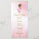 Menu Princess baby shower avec adorable jeune fille afro-américaine d'ethnie princesse portant une tenue rose mignonne et un chapelet de perles sur un élégant arrière - plan rose et or. Ces menus de baby showers princesses mignons sont facilement customisés pour votre événement en ajoutant simplement vos détails dans le style de police et la disposition de votre choix.