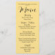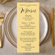 Simple style, beurre jaune couleur carte menu dîner pour votre mariage qui comprend un script noir et stylisé avec vos informations personnalisées. Modifiez la carte de menu et remplacez le nom et la date du mariage ainsi que les éléments du menu qui seront servis à la réception de votre mariage. Sélectionnez votre style de carte de menu selon vos besoins.