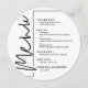 Une carte ronde noir et blanc pour le dîner vous propose un choix de menus en lettrage blanc chic, parfait pour une réception de mariage moderne, un dîner de répétition mariage, une fête d'anniversaire ou tout autre événement spécial avec un dîner assis. Personnalisez facilement vos choix et vos détails pour le dîner. PLUS de couleurs et de tailles dans notre magasin.