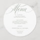 Cette carte mariage ronde élégante, blanche et sauge verte présente un style classique et ancien avec une calligraphie romantique. Ajoutez votre choix de dîners pour les entrées ou les entrées, le premier plat, le plat principal ou l'entrée, et les desserts. Donnez le ton à votre réception de mariage ou à votre dîner de répétition d'inspiration italienne sophistiquée de luxe, ou à vos offres de douche nuptiale, avec ce design élégant et minimaliste.