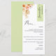 Pourquoi passer à l'endroit cartes et cartes de menu quand vous pouvez avoir un élégant menu tout-en-un élégant personnalisé avec chaque nom d'invité! Contemporain, simple et élégant design avec des détails floral d'aquarelle exquis dans un beau mélange de teintes pêche, orange, rousse, rose poussiéreuse, crème et champagne. Eléments calligraphiques écrits à la main modernes. Tirer sur le coin supérieur droit dans le ton vert avec le nom de l'invité en noir. Retour dans le même vert que la bande. Possibilité de changer la couleur de bande ou de retour en sélectionnant "customiser plus loin". REMARQUE : veuillez commander individuellement chaque menu en ajoutant un nom d'invité dans le menu, ajouter un menu dans le panier, revenir au menu, ajouter un deuxième nom d'invité, ajouter un menu dans le panier...poursuivez ce processus avec tous les noms d'invités sur votre liste. Zazzle ne reçoit pas de listes de noms d'invités à imprimer. Pour de courts prénoms ajouter avec votre barre d'espace clavier quelques "espaces" vides avant le nom au centre. Design disponible dans une variété de choix de couleurs. Une partie de notre collection "Peach Floral Delight and Green" avec une variété de produits de coordination disponibles. Visitez la collection entière à l'adresse suivante : https://www.zazzle.com/collections/peach_floral_delight_and_green-119552409662994360