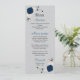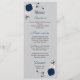 Menu bleu marine fleurs blanches argent feuille mariage