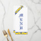 Ce menu mariage est décoré de Bleu, Or & Blanc, des barres damassées sur un arrière - plan blanc.