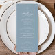 Bleu Simple Elegant Cross Calligraphy Baptism Menu comporte une délicate croix moderne, associée à un type moderne et un magnifique script de calligraphie.