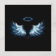 Light, artistique, blue angel wings on a black background. Angel wings.