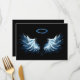 Menu Blue Glowing Angel Wings on black background