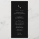 Cette carte de menu mariage monogramme chic et boho est parfaite pour un mariage minimaliste. Le design bohème moderne noir foncé, sophistiqué et chic, se compose d'une calligraphie rustique simple au style unique mais classique. Personnalisez votre menu monogrammé avec vos initiales.