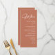 Parfait pour votre thème mariage en terre cuite. Ce design époustouflant mêle harmonieusement le vert sauge et les couleurs mariages en terre cuite, créant une atmosphère mariage de automne enchanteresse. Idéal pour les mariages d'orange brûlé, ce menu améliore vos couleurs mariages de automne avec son ambiance de mariage en terre cuite boho. Idéal pour un mariage du désert ou un mariage boho d'automne, le menu est assorti aux tons rouille et bordeaux mariage, aux palettes mariages en terre cuite et rose vif, donnant vie à vos idées mariages du désert. Incontournable pour les idées mariages de automne, il capture magnifiquement l'essence d'un thème couleur mariage rouille.