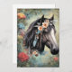 Menu Brown horse in flowers.