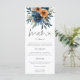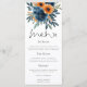 Burnt Orange Navy Blue Florals Wedding. Beautiful flowers border the top, with an elegant script for Menu and easy to personalise the rest of the text to your requirements.