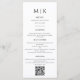 Calligraphie simple Rustique Mariage QR Code Menu Ces élégantes serviettes de douche mariage ou nuptiales modernes et modernes présentent un design de texte simple en noir et blanc qui dégage un style minimaliste. Ajoutez vos initiales ou votre monogramme pour les rendre complètement vôtres.