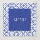 Host the perfect dinner party or event with this elegant two sided blue and white border menu card.