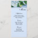 This Menu Card template is shown on basic paper in a blue colour with a hydrangeas photo print.