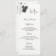 This Menu Card template is shown on the basic paper in white with a lovely black rose print design. Script and standard text in a black colour.