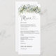 Menu de cérémonie Mariage floral verdoyant. Cette invitation à la douche de mariage élégante et élégante présente de magnifiques aquarelles peintes à la main. Trouvez les articles correspondants dans l'aquarelle Eucalyptus Floral Greenery_HB2.