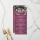 Doté de jolies lampes à cordes et d'illustrations à la main de guirlandes fleuries rustiques, personnalisez ce menu élégant avec vos informations spéciales de menu de jour de mariage sur un arrière - plan de panneaux de bois rouge bordeaux. Conçu par Thisisnotme©