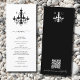 Un design minimaliste de mariage monogramme noir et blanc pour lustre. Un design simple qui utilise une silhouette dessinée à la main d'un lustre pour créer un monogramme classique élégant. Un charmant lustre noir et blanc avec une typographie de script élégante et classe. Un élégant lustre à thème carte de menu mariage avec QR Code moderne, pour permettre à votre client de voir le menu numériquement. Des invitations de mariage et d'autres articles de papeterie sont également disponibles.