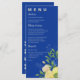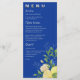 Menu Chic Blue Jaune Floral Lemon Summer Wedding Party