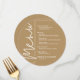Une carte de menu pour dîner en or rond vous propose un choix de menus en lettrage blanc chic, parfait pour une réception de mariage moderne, un dîner de répétition mariage, une fête d'anniversaire ou tout événement spécial avec un dîner assis. Personnalisez facilement vos choix et vos détails pour le dîner. PLUS de couleurs dans notre magasin.