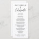 Menu chic pour votre réception de mariage, fête de fiançailles, dîner de répétition et autres célébrations avec "Manger, Boire & Célébrer" dans un mélange d'élégante typographie serif et un script moderne, votre menu customisé dans une simple typographie, et vos prénoms et date de l'événement.