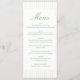 Elevate your reception tablescape with this chic minimalist stripe green wedding menu, designed to bring elegance and modern sophistication to your special day. Featuring soft sage green stripes and refined minimalist typography, this menu card adds a timeless and stylish touch to your wedding décor.