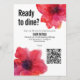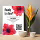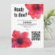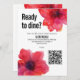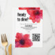 La carte de menu plat recto verso avec code QR de la collection "Anemone Dreamscape Mariage Collection" offre un complément charmant et fonctionnel à votre accueil de mariage. Sur le devant du panneau, contre un arrière - plan blanc propre, la légende "Prêt à dîner ?" invitations invités à se joindre à l'expérience de dîner. Sous la légende, il y a de l'espace pour le texte personnalisable, où vous pouvez ajouter un message ou des détails sur les arrangements de repas. Ajoutant une touche d'élégance, deux anémones rouges frappantes ornent les coins supérieur et inférieur du côté avant, complétant le design général par des accents floraux éclatants. En retournant à l'arrière du panneau, vous découvrirez une suite de l'élégante présentation. Contre un arrière - plan blanc, un seul anémone rouge grace le coin supérieur, ajoutant une pop de couleur et de charme. Ci-dessous, les noms des couples, la date du mariage et l'emplacement du lieu sont élégamment affichés, ajoutant une touche personnalisée à la carte à plat recto-verso. Cette carte à plat double face sert non seulement de guide pratique pour votre réception de mariage, mais améliore également l'esthétique générale avec ses beaux éléments design. Il fait partie de la collection complète "Anemone Dreamscape Mariage Collection", offrant des options de papeterie coordonnées pour élever l'ambiance de votre journée spéciale.