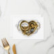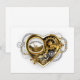 Coeur steampunk mécanique, volumétrique, avec manomètre, acier et or sur arrière - plan blanc. Style Steampunk.