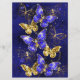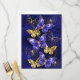 Composition des luxueux papillons saphir et bijoux en or sur arrière - plan bleu texturé.