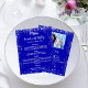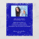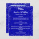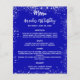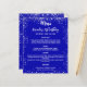 Un fond bleu royal. Texte blanc. Décoré de paillettes argentées fausses, de scintillements.