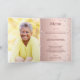 Un fond dégradé or rose faux avec des diamants roses. Le nom est écrit avec un style de lettrage à la main de couleur or rose foncé moderne. Le numéro 70 est écrit avec une police de type ballon, script. Texte de bienvenue, photo, menu et un mot de remerciement au verso.