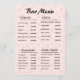 Menu de boissons simple rose