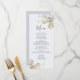 Faites-vous plaisir à la réception de votre mariage avec notre carte de menu mariage élégante, avec un mélange intemporel de tons bleu clair et vert sauge. Conçu avec un script de calligraphie élégant et une typographie traditionnelle, ce menu dégage élégance et charme. Les délicats motifs floraux de l'aquarelle, ornés de feuillage feuille botanique et de fleurs d'haleine pour bébé, ajoutent une touche douce et romantique à votre design minimaliste simple. Parfaitement agencé dans un plan de repas de cours, il assure à la fois beauté et fonctionnalité pour vos invités. Idéal pour un décor de réception design, cette carte à la carte est incontournable pour les couples à la recherche d'un mélange d'élégance classique et moderne.