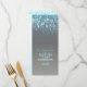 Menu de dîner de réception de mariage simple recto-verso dans des tons gris, blanc et bleu aqua. Cartes de choix des invités assorties disponibles. Conçu par Sarah Trett. www.sarahtrett.com pour www.mylittleedenwedding.com