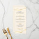 Carte de menu de dîner de mariage avec un design à tourbillons dorés.