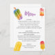 Summer Popsicle Baby Shower Menu Cette carte de menu Baby Shower vient compléter ma jolie collection "Popsicle Ice Cream Summer Party" Baby Shower. Vous trouverez l'Invitation, les Inserts, les Signes et les articles correspondants dans ma boutique Zazzle.