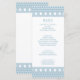 Élégant menu de fête toge grecque ou romaine avec un motif méandre grec minimaliste en bleu. Produit personnalisable pour une célébration mémorable. Parfait pour vos mariages, fiançailles, fêtes de fin d'études, anniversaires, save the dates, enterrements de vie de jeune fille et fêtes d'anniversaire sur le thème de la Grèce antique ou de la Rome antique.