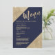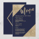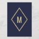 Élégantes, chics et glamour, coins imprimés de faux strass dorés et écriture dorée sur fond bleu marine, cartes de menu de réception de mariage. Ce design classique et sophistiqué est parfait pour une réception de mariage classe, élégante et tendance. Personnalisez avec votre propre menu sur le devant, ainsi que vos noms et dates. Personnalisez ensuite le verso avec votre initiale de monogramme. Conception d'impression photo personnalisée.