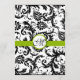 Cartes d'invitation de mariage à motifs damassés floraux noirs et blancs modernes avec une garniture verte pomme. Parfait pour les thèmes de mariage Rococo Baroque, Renaissance médiévale, Art Déco Art Nouveau, Gatsby des années 20, élégant ou rustique à la ferme, ou lieux de réception victoriens.