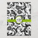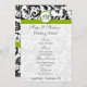 Cartes d'invitation de mariage à motifs damassés floraux noirs et blancs modernes avec une garniture verte pomme. Parfait pour les thèmes de mariage Rococo Baroque, Renaissance médiévale, Art Déco Art Nouveau, Gatsby les années 20, Victorien ou Élégant Mariage à la ferme.