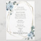 Menu Mariage aquarelle | Boho couleur bleu azur roses entourent un cadre géométrique de terrarium de style or avec de la végétation sauge. Reverse est un bleu poussiéreux gratuit. Personnaliser texte, style de police, couleur et taille. OEuvre originale créée pour BarefootBride™ par © WhimsicalArtwork™ - Il s'agit d'une suite de papier à lettres Mariage complète avec papier à lettres mariage, baby shower et autres articles de papeterie d'événements correspondants.