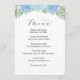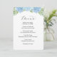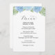Menu de mariage avec hydrangeas floraux bleus