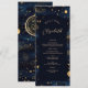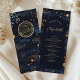 Ajoutez une touche de magie à votre réception avec ce menu de mariage sur le thème céleste, qui présente le nom de chaque invité dans un élégant script. Le fond bleu foncé est orné d'étoiles dorées, de lunes et de constellations, créant une esthétique de ciel nocturne rêveuse. Une arche gracieuse encadre le nom personnalisé et les détails du menu dans des polices sérif raffinées et calligraphiées. Idéal pour les mariages en soirée, les célébrations de stargazer ou les événements inspirés de l'astrologie, ce menu fait double emploi en tant que carte de placement unique et souvenir. Entièrement modifiable pour les noms des invités et les détails des plats.