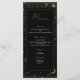 Menu de mariage Céleste Lune Étoiles Noir & Or